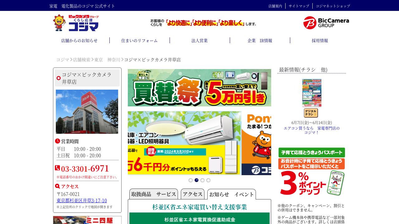 コジマ×ビックカメラ 井草店は、給湯器の販売から設置、修理までを一貫して行うことができる総合家電量販店です。