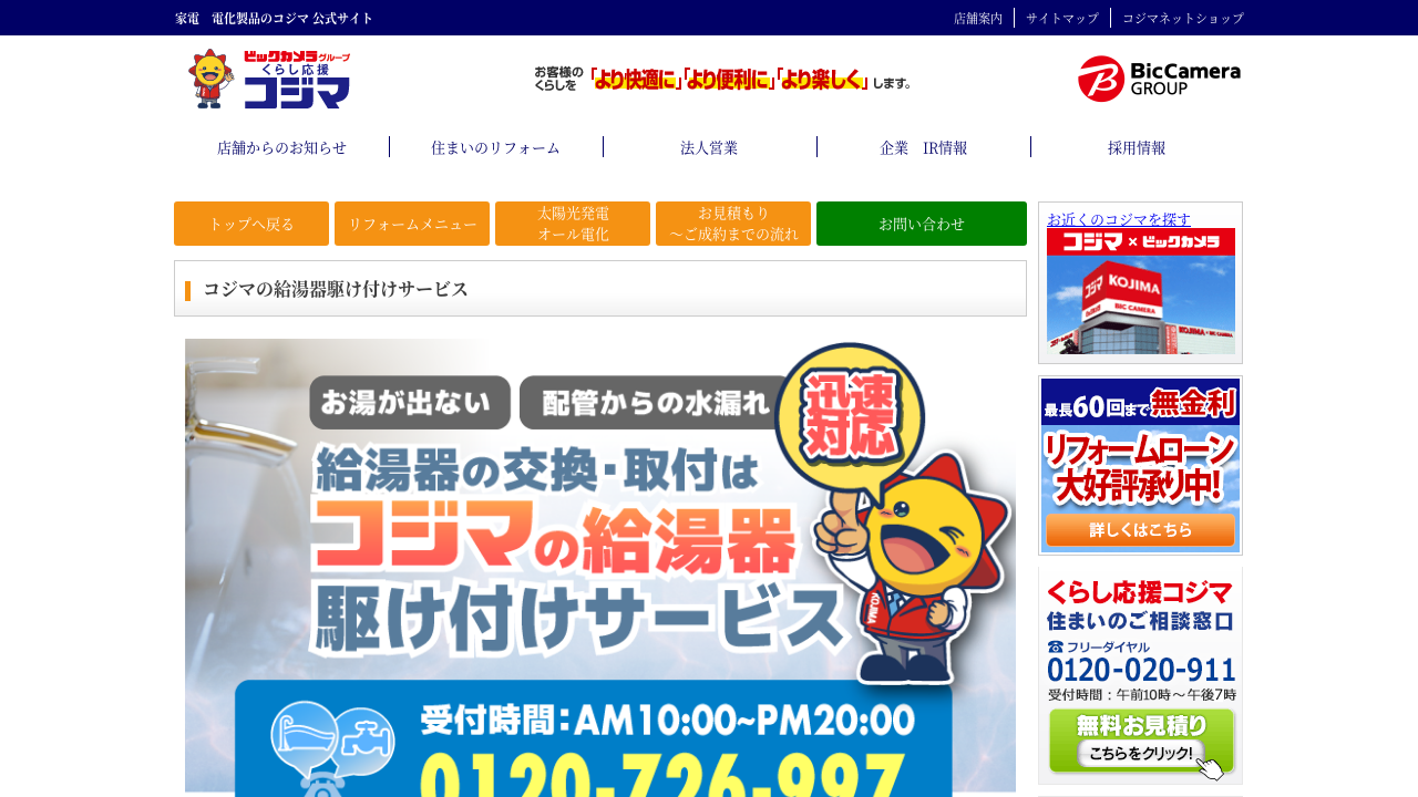 コジマ×ビックカメラ 三鷹店は、給湯器の販売・交換・修理を専門に行う、地域密着型の業者です。