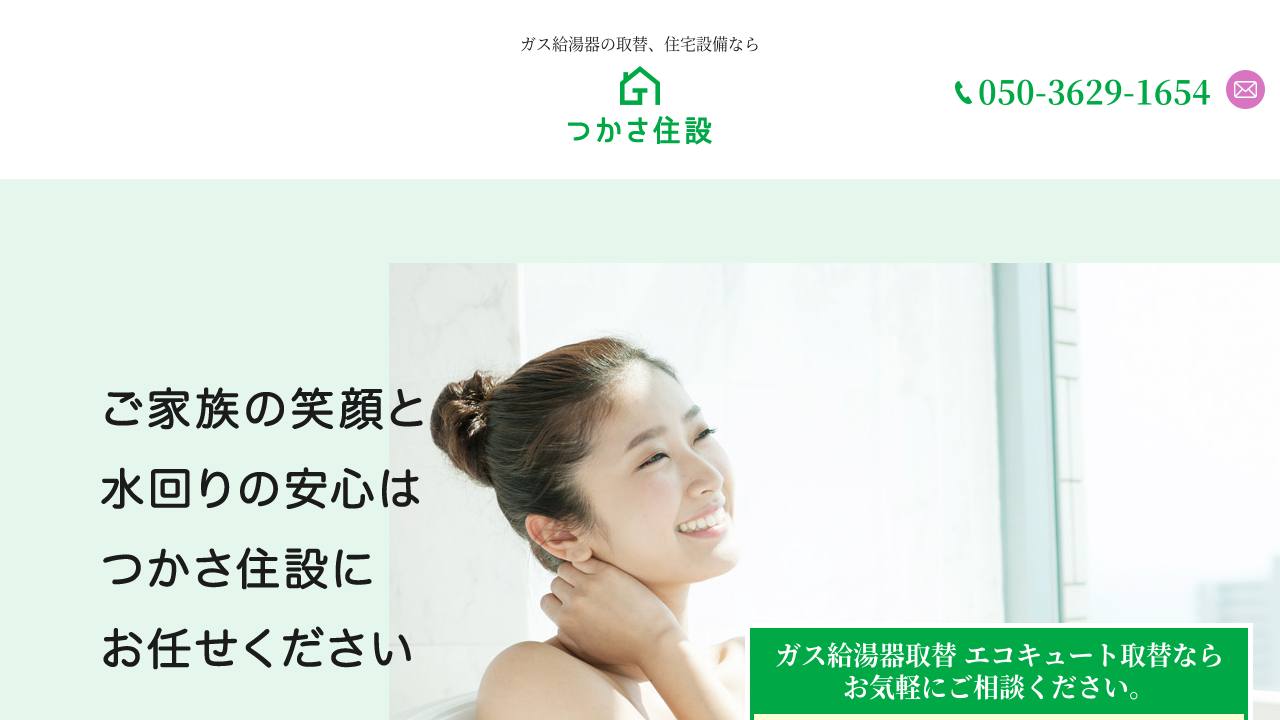 株式会社つかさ住設は、武蔵村山市・瑞穂町を拠点とするガス給湯器の交換・修理の専門業者です。