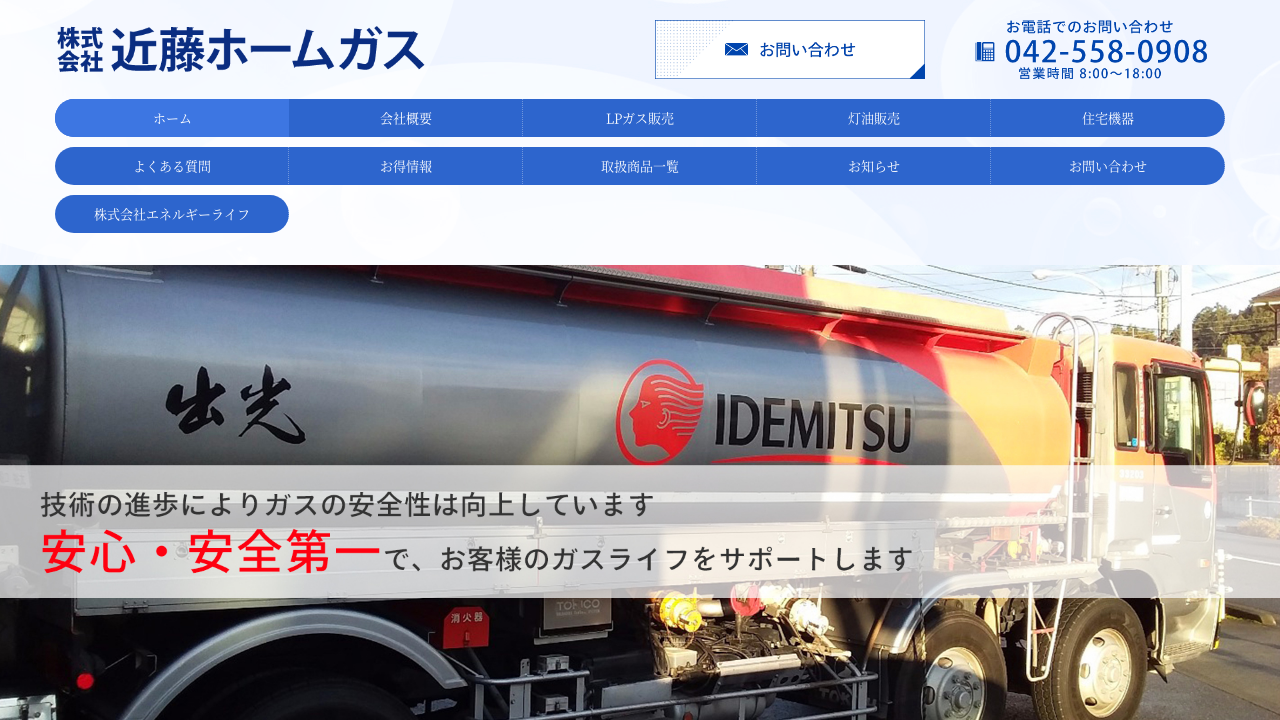 株式会社近藤ホームガスは、東京都あきる野市に拠点を置く、LPガスや灯油の販売、住宅機器の販売・施工を行う会社です。