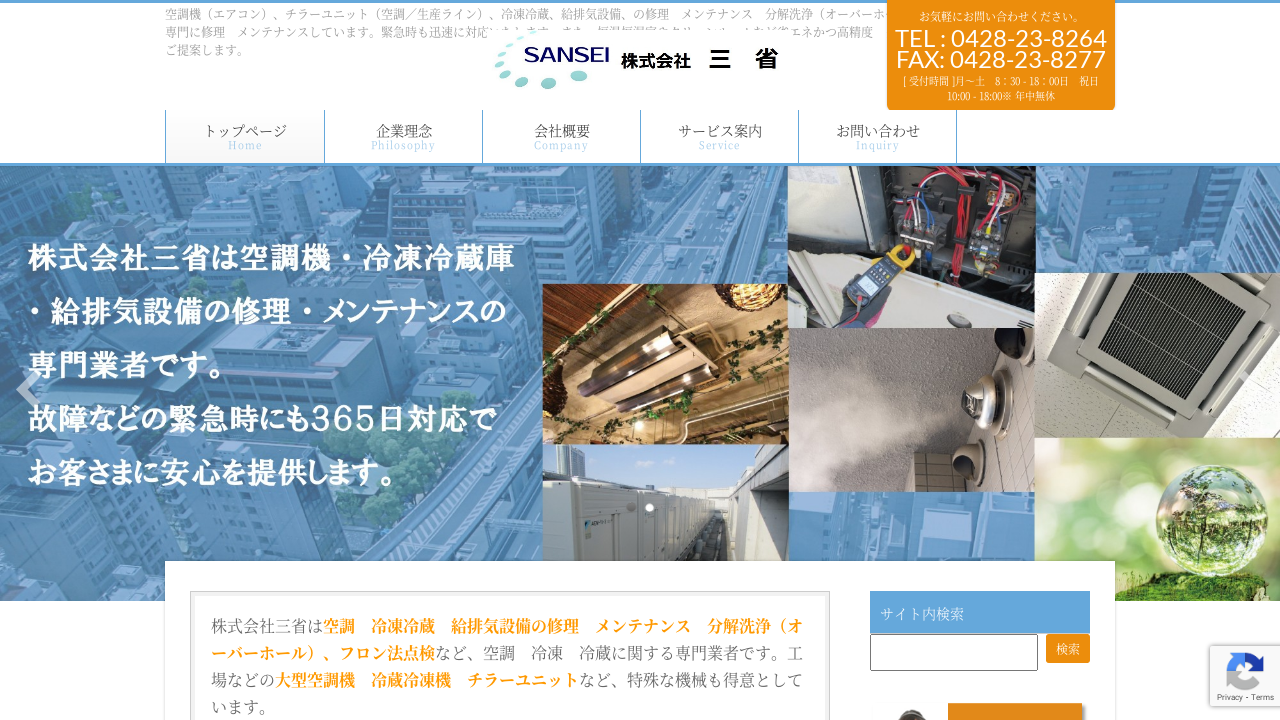 株式会社三省は、空調・冷凍冷蔵・給排気設備の修理・メンテナンスを専門とする業者です。