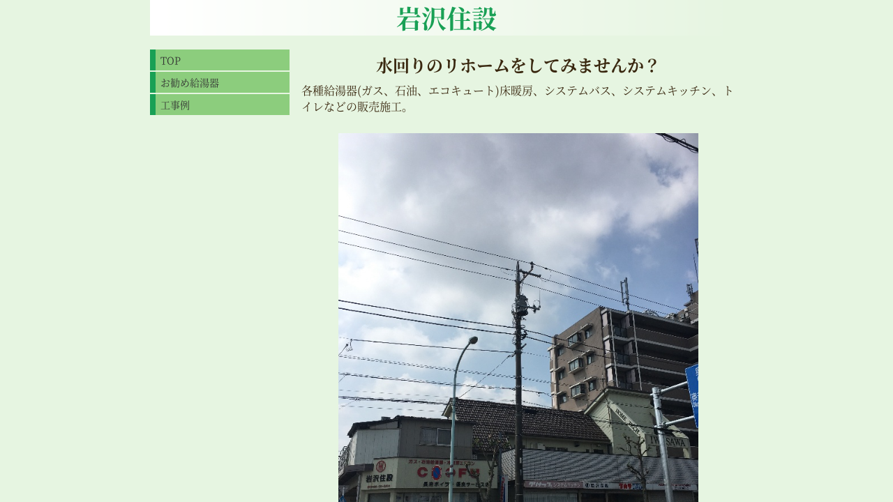 岩沢住設は、東京都青梅市で戸建住宅専門に、給湯器の販売・施工を行う業者です。