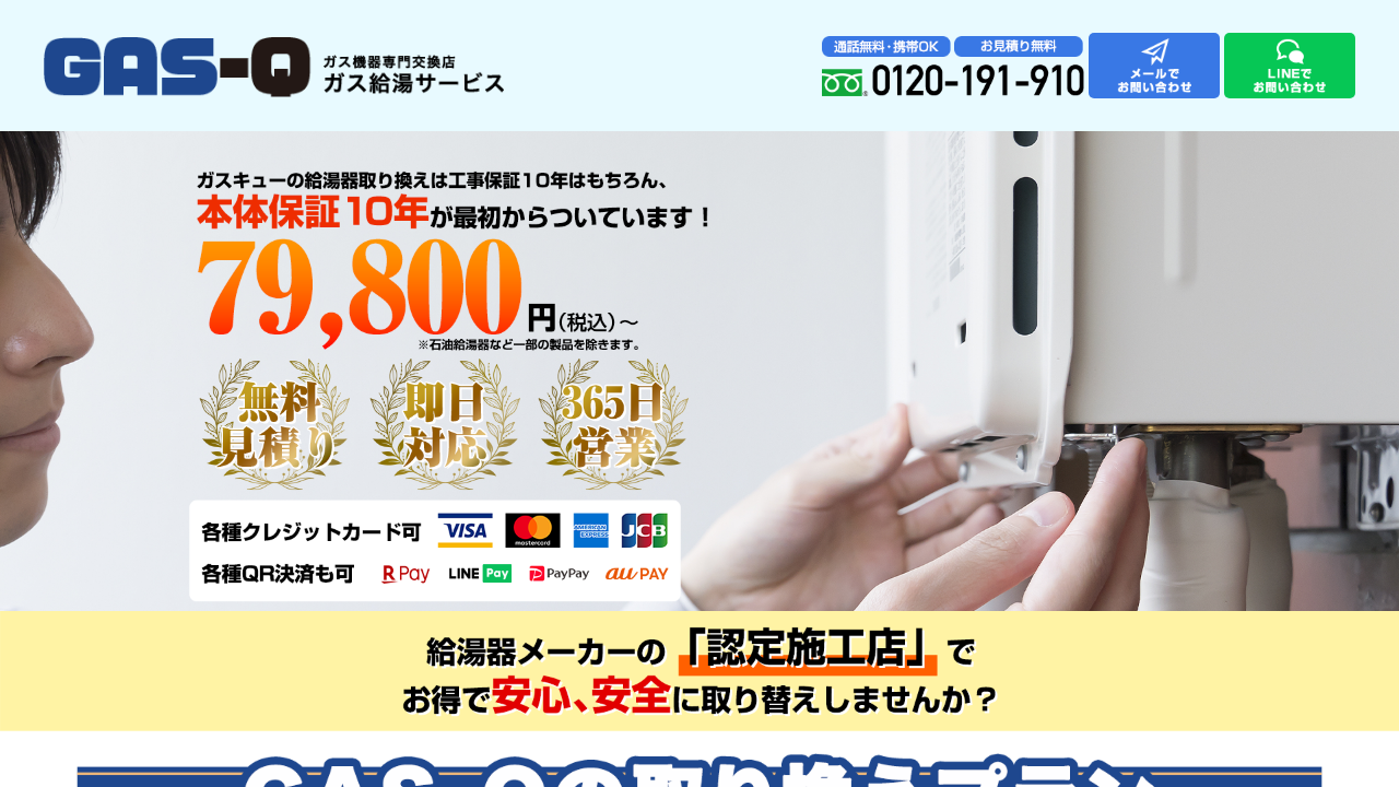 ガス給湯サービス堺店(GAS-Q)は、大阪府堺市に拠点を置く、給湯器の交換・修理を専門とする業者