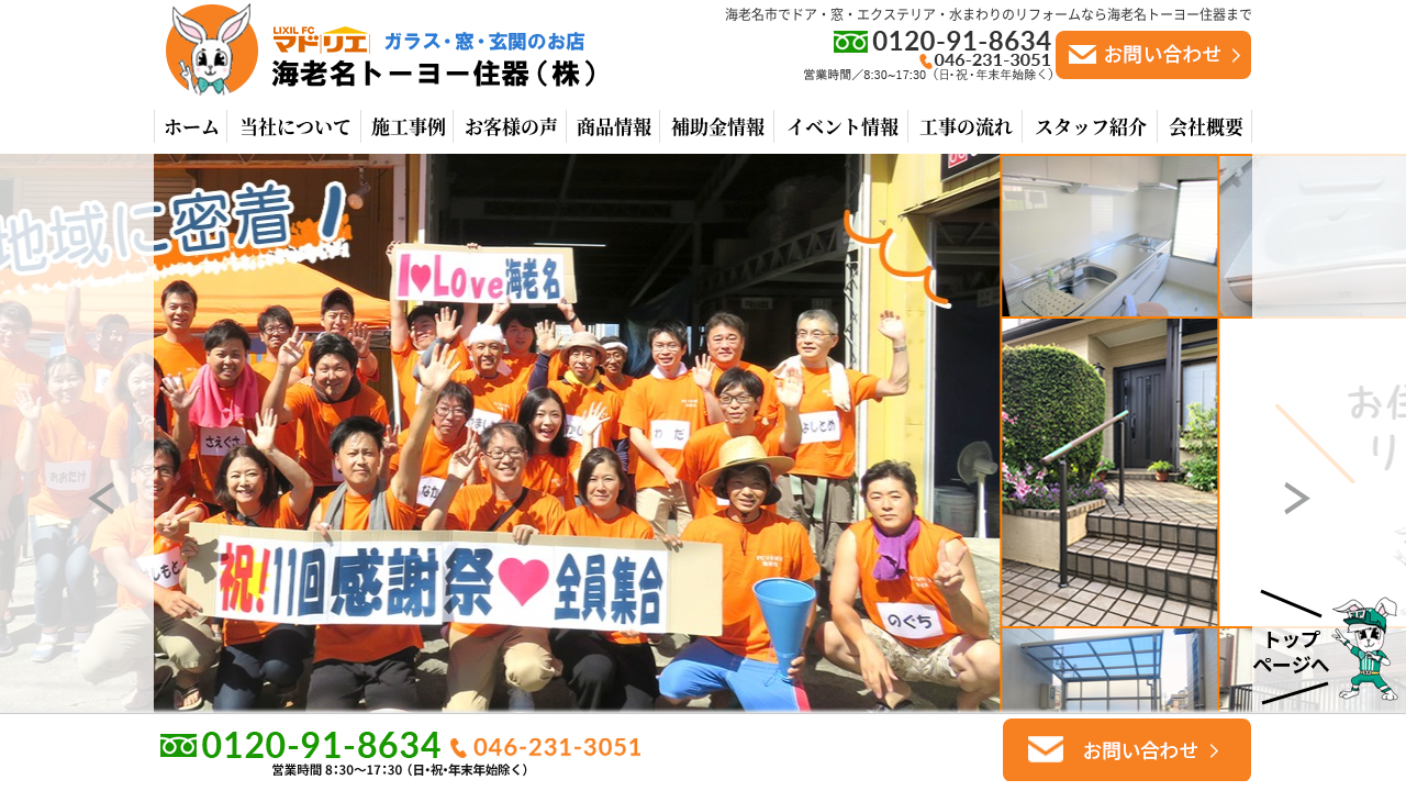 海老名トーヨー住器株式会社「マドリエ海老名」は、神奈川県海老名市で40年以上、地域に根ざしたリフォーム会社です。