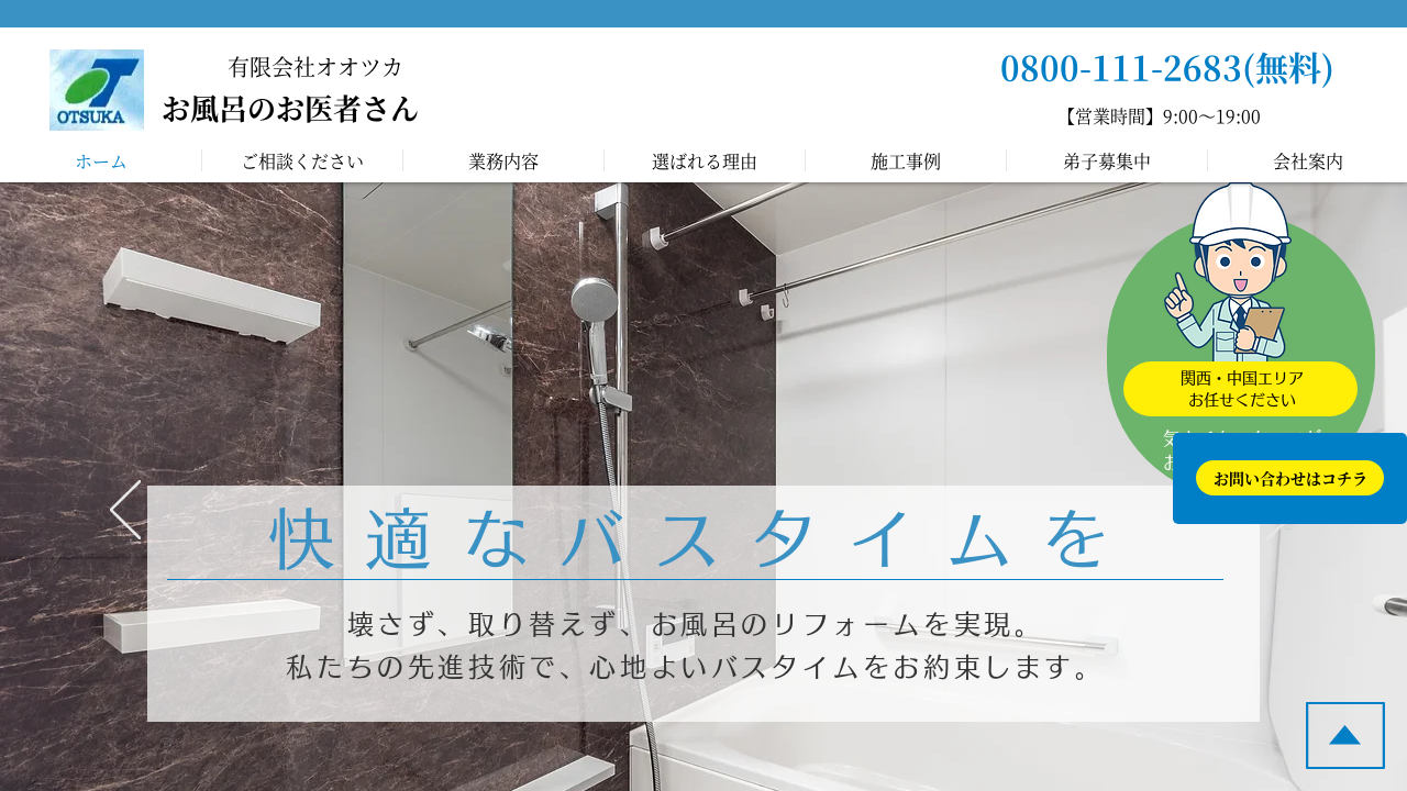「お風呂のお医者さん」は、神戸、大阪、岡山、広島、鳥取、島根といった広いエリアで施工実績があります。地域密着だからこそできる、迅速な対応と丁寧なアフターフォローが強みです。3M(スリーエムジャパン)施工販売店として、保証期間は5年と長く、万全の体制でサポートしています。リフォーム後も安心して任せられる体制が整っているため、長く快適にお風呂を利用できます。