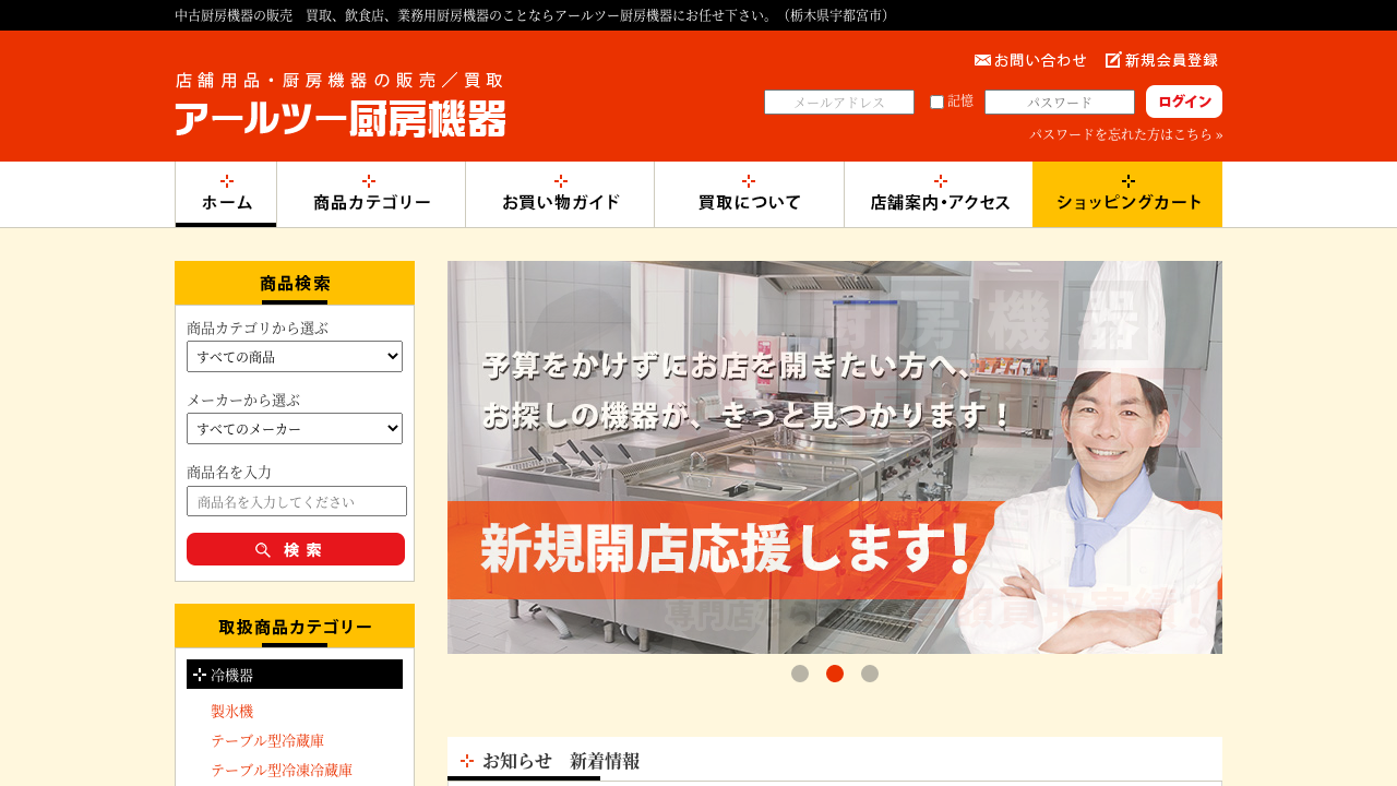 アールツー厨房機器は、栃木県宇都宮市にある中古厨房機器の販売・買取専門店です。
