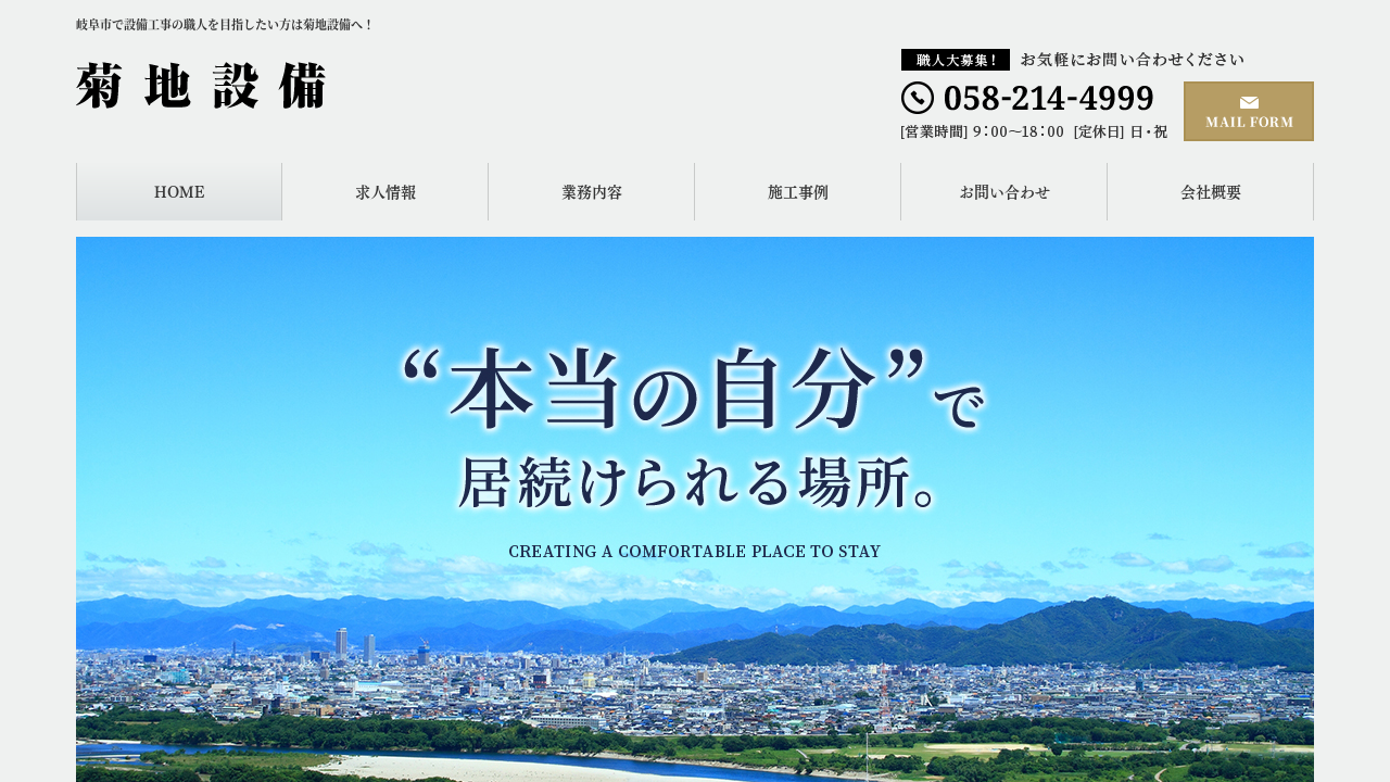 菊地設備は、岐阜市で空調工事・給湯器・床暖房・電気工事など、幅広い設備工事を専門とする会社
