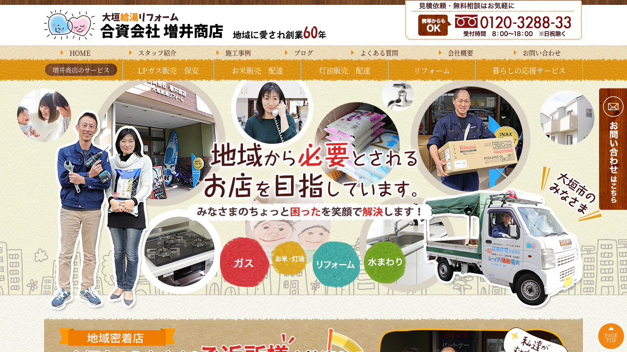 合資会社 増井商店は、岐阜県大垣市で給湯器交換や蛇口交換、トイレリフォーム、灯油配達など幅広いサービスを提供している