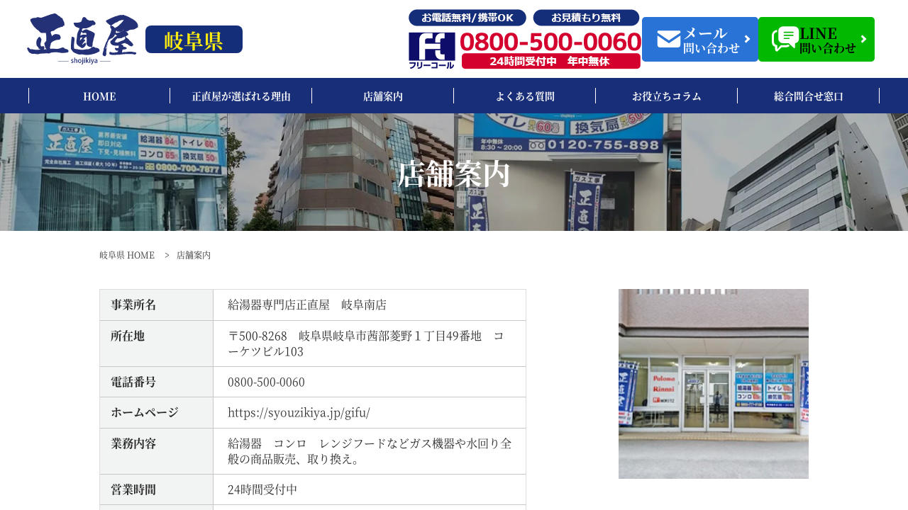 正直屋 岐阜店は、岐阜県で給湯器の交換や修理を専門に行っている業者です。