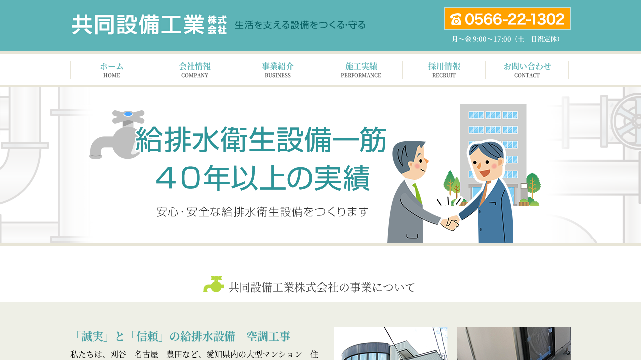 共同設備工業は、愛知県内の大型マンションや住宅を中心に、給排水設備工事や空調工事を40年以上請け負っている実績のある会社です。
