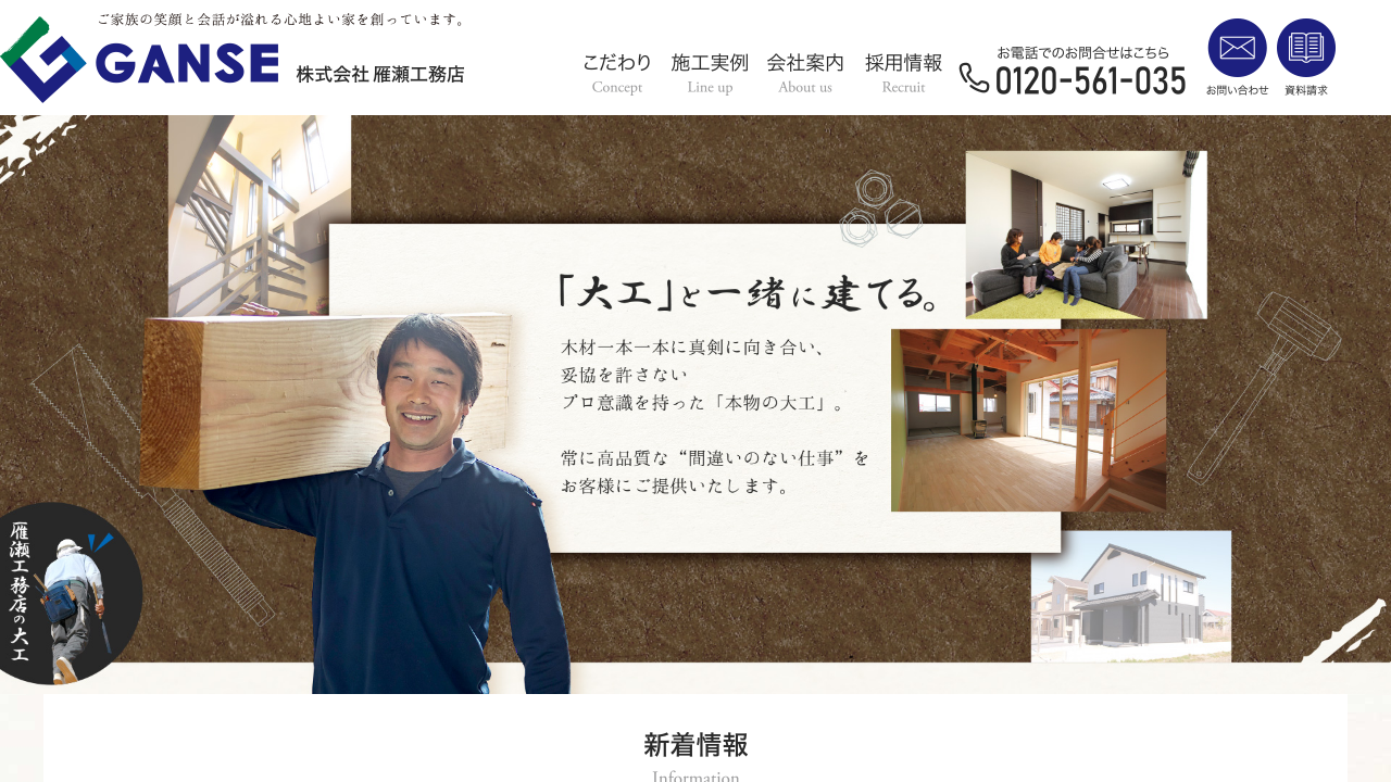 株式会社雁瀬工務店 本社は、滋賀県草津市を拠点に、新築・リフォームを手掛ける会社です。