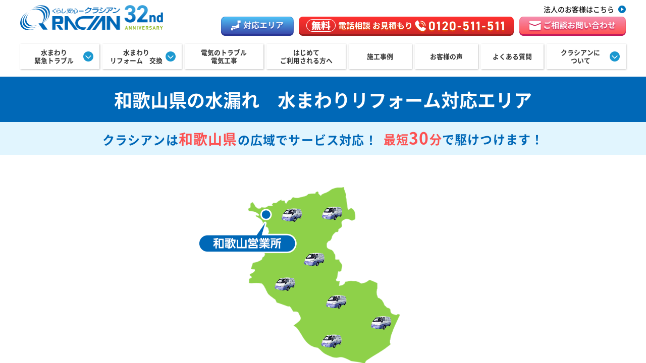 クラシアン和歌山営業所は、和歌山県で水漏れや水回りトラブルに対応する業者です。