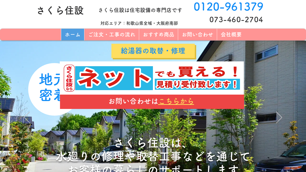さくら住設は、和歌山県全域と大阪府南部を対応エリアとする、住宅設備の専門店です。