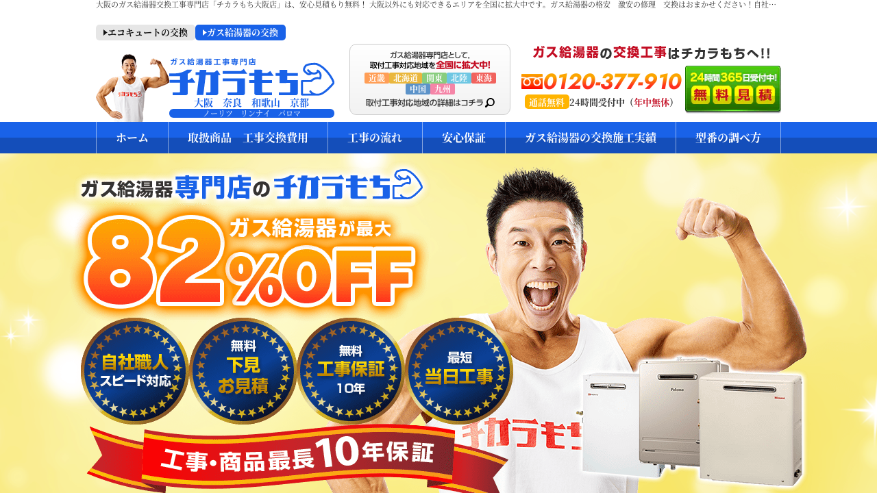 チカラもち和歌山店は、和歌山県でガス給湯器の交換・修理を専門とする業者です。