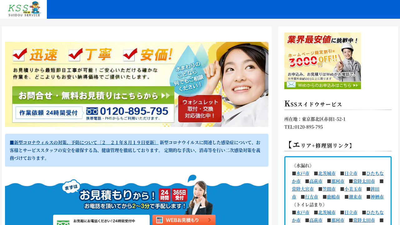 KSSスイドウサービスは、茨城県北部エリアで水まわりのトラブルに対応する水道修理業者です。