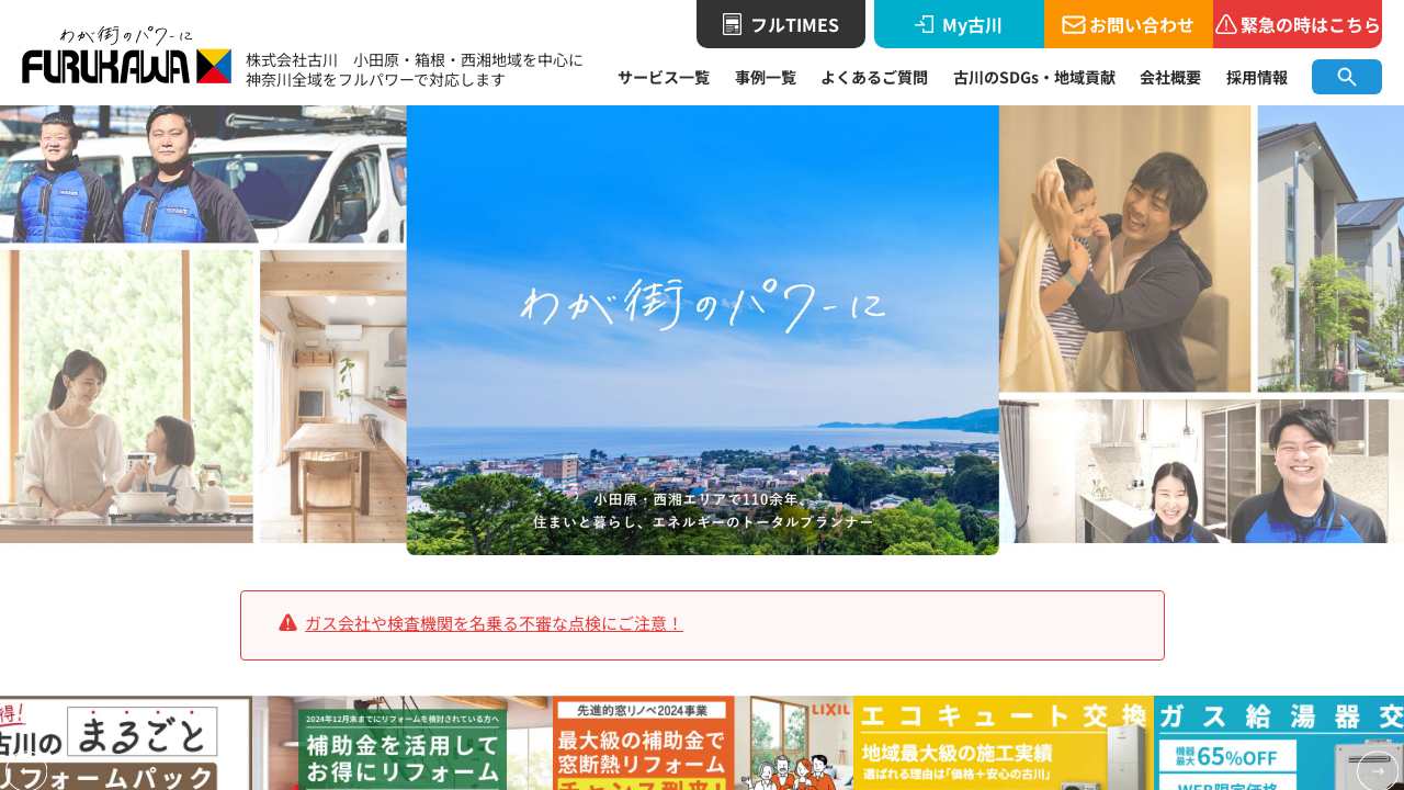 株式会社古川は、小田原・箱根・西湘地域を中心に神奈川県全域で活躍する給湯器業者
